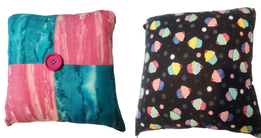 2 to 3 fabric selections, pillow form, button, zipper, thread.